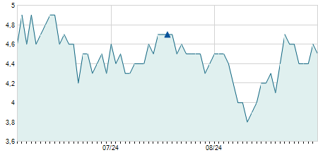 | 08/08/2025 | -0,30 / -0,83% | 35,80 | 35,80 | 35,80 | 35,80 | 35,80 | 35,80 | 300 |   |