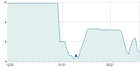 -0,70 / -4,35%