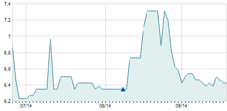 | 07/04/2009 | +0,90 / +6,98% | 13,40 | 13,80 | 13,00 | 13,80 | 13,80 | 13,80 | 50.300 |   |
