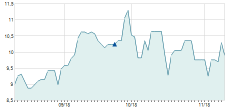 | 12/09/2017 | -4,00 / -1,40% | 280,00 | 289,00 | 280,00 | 281,00 | 283,72 | 106,63 | 53.500 |   |