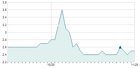 | 08/11/2017 | -3,60 / -1,26% | 288,80 | 298,90 | 277,70 | 281,50 | 285,24 | 106,82 | 79.920 |   |