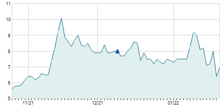 | 20/11/2019 | -2,20 / -14,19% | 13,30 | 14,50 | 13,30 | 13,30 | 13,64 | 9,52 | 4.100 |   |