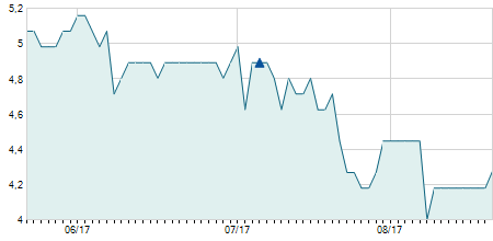 | 10/02/2022 | -1,00 / -12,99% | 7,70 | 7,70 | 6,60 | 6,70 | 6,80 | 6,70 | 3.300 |   |