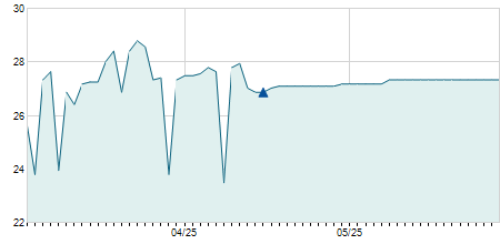 | 01/11/2023 | -0,30 / -2,54% | 11,80 | 11,90 | 11,10 | 11,50 | 11,69 | 9,56 | 98.800 |   |