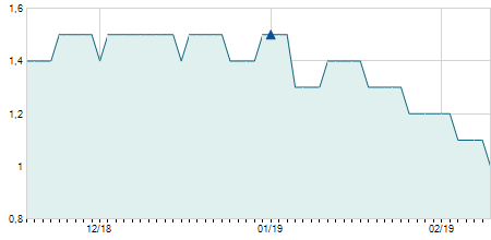 | 05/12/2023 | -0,20 / -1,55% | 12,90 | 12,90 | 12,70 | 12,70 | 12,83 | 10,56 | 55.500 |   |