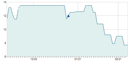 | 19/01/2015 | +0,10 / +0,82% | 12,10 | 12,30 | 12,10 | 12,30 | 12,30 | 3,72 | 18.100 |   |