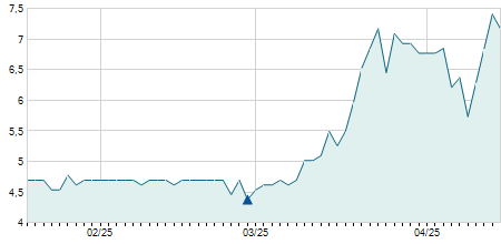 | 23/01/2015 | +0,80 / +6,35% | 12,60 | 13,50 | 12,60 | 13,40 | 13,40 | 4,05 | 374.670 |   |
