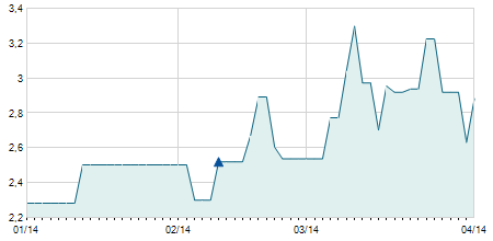 | 04/07/2017 | +0,10 / +0,88% | 11,30 | 11,40 | 11,20 | 11,40 | 11,22 | 4,30 | 56.500 |   |