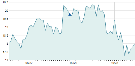 | 19/12/2017 | -0,20 / -2,00% | 9,90 | 9,90 | 9,70 | 9,80 | 9,80 | 3,70 | 10.302 |   |