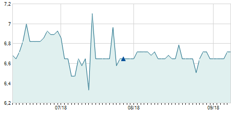 | 17/11/2022 | +0,30 / +4,55% | 6,00 | 6,90 | 6,00 | 6,90 | 6,78 | 5,14 | 3.800 |   |