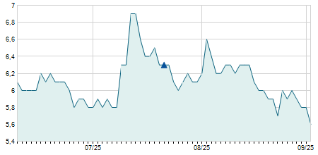| 02/08/2017 | -0,10 / -0,91% | 10,80 | 11,00 | 10,80 | 10,90 | 10,86 | 4,11 | 26.000 |   |