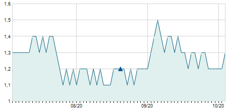 | 05/12/2022 | +0,10 / +1,32% | 8,00 | 8,00 | 7,60 | 7,70 | 7,70 | 5,73 | 14.000 |   |