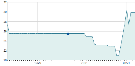 | 29/03/2021 | +0,10 / +2,04% | 4,40 | 5,00 | 4,30 | 5,00 | 4,38 | 5,00 | 43.400 |   |