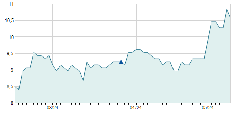 | 07/04/2021 | +0,40 / +7,55% | 6,00 | 6,00 | 5,70 | 5,70 | 5,98 | 5,70 | 13.600 |   |