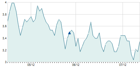| 12/01/2024 | -0,30 / -3,49% | 8,40 | 8,50 | 8,30 | 8,30 | 8,40 | 7,70 | 15.300 |   |