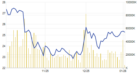 Giá đóng cửa ngày 25/03/2024