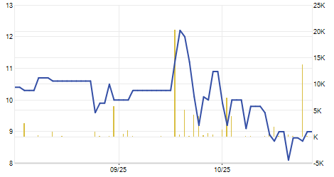 | 28/11/2019 | 0,00 / 0,00% | 116,00 | 116,00 | 116,00 | 116,00 | 116,00 | 107,71 | 0 |   |