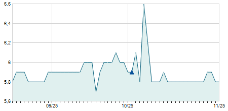 | 10/04/2025 | +0,70 / +8,86% | 8,60 | 8,60 | 7,30 | 8,60 | 8,53 | 6,85 | 33.100 |   |