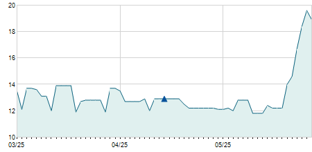 | 11/02/2025 | +0,10 / +1,72% | 5,90 | 5,90 | 5,90 | 5,90 | 5,90 | 4,70 | 100 |   |