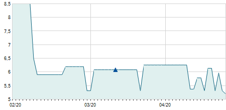 | 06/09/2023 | +0,50 / +3,33% | 14,90 | 15,50 | 14,90 | 15,50 | 15,13 | 14,97 | 300 |   |