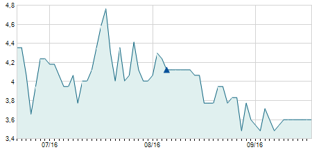 | 03/01/2024 | -1,30 / -9,63% | 12,30 | 12,30 | 12,20 | 12,20 | 12,22 | 12,20 | 1.300 |   |