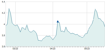 -0,30 / -3,90%