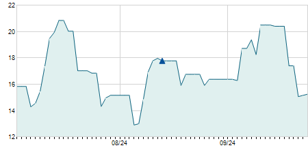 | 18/12/2012 | -0,10 / -0,66% | 15,10 | 15,20 | 14,80 | 15,00 | 15,00 | 3,18 | 1.655.740 |   |