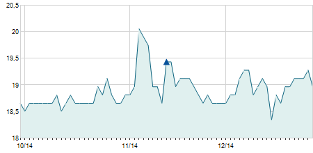 | 16/05/2023 | +0,05 / +0,27% | 18,55 | 18,95 | 18,45 | 18,60 | 18,62 | 18,60 | 103.400 |   |