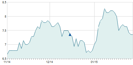 | 12/08/2016 | +0,30 / +11,54% | 2,70 | 2,90 | 2,40 | 2,90 | 2,72 | 2,90 | 7.100 |   |