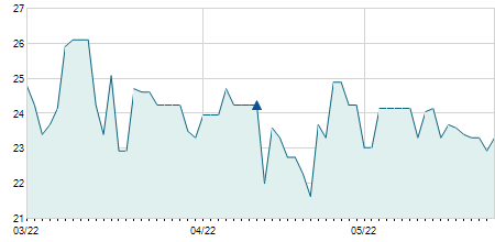 | 23/06/2011 | -0,30 / -2,16% | 13,80 | 14,00 | 13,40 | 13,60 | 13,60 | 11,63 | 121.600 |   |
