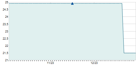 | 04/09/2020 | -0,70 / -14,58% | 4,10 | 4,10 | 4,10 | 4,10 | 4,10 | 4,10 | 100 |   |