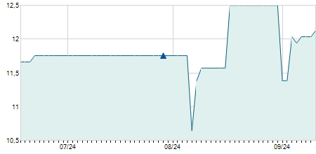 | 12/02/2025 | -0,10 / -1,01% | 9,80 | 9,80 | 9,80 | 9,80 | 9,80 | 9,02 | 1.000 |   |