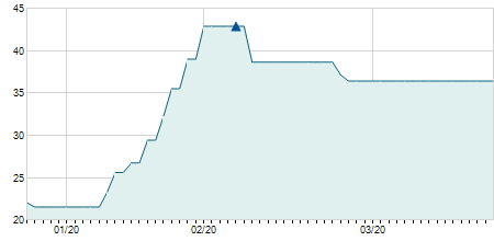 | 23/07/2024 | 0,00 / 0,00% | 29,65 | 29,70 | 29,65 | 29,70 | 29,68 | 20,81 | 300 |   |