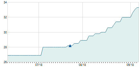 | 01/06/2021 | -0,14 / -1,67% | 8,39 | 8,39 | 8,10 | 8,26 | 8,12 | 7,47 | 8.500 |   |