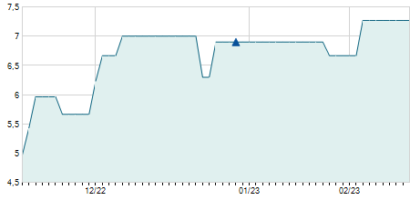 | 02/02/2021 | +2,46 / +20,02% | 14,75 | 14,75 | 14,75 | 14,75 | 14,75 | 13,33 | 1.037.200 |   |