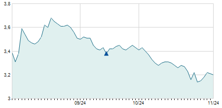 | 23/04/2021 | +0,35 / +3,89% | 8,71 | 9,40 | 8,70 | 9,35 | 8,96 | 8,45 | 146.000 |   |