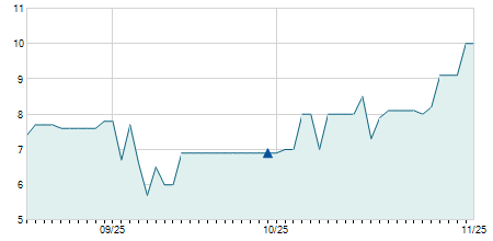 | 13/07/2021 | +0,25 / +3,14% | 8,00 | 8,29 | 7,61 | 8,20 | 7,99 | 7,41 | 30.900 |   |