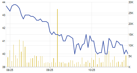 | 11/04/2025 | +0,20 / +1,63% | 12,25 | 12,45 | 12,00 | 12,45 | 12,23 | 11,05 | 12.600 |   |