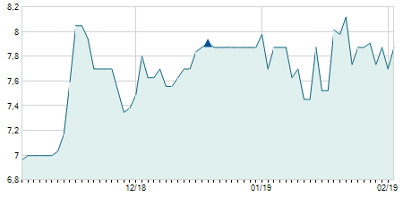 | 19/02/2025 | -0,15 / -1,22% | 12,20 | 12,40 | 12,15 | 12,15 | 12,19 | 10,78 | 7.000 |   |