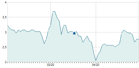 | 21/04/2025 | -0,10 / -0,32% | 31,00 | 31,30 | 31,00 | 31,30 | 31,10 | 28,36 | 500 |   |