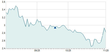 | 25/06/2015 | -1,00 / -3,45% | 28,30 | 28,30 | 28,00 | 28,00 | 28,03 | 7,32 | 12.450 |   |