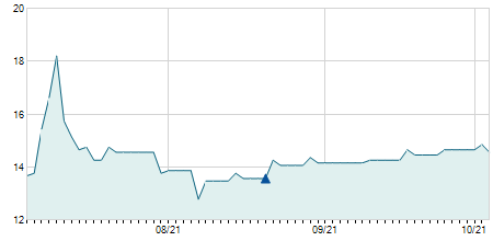 | 20/10/2023 | +0,15 / +0,32% | 46,80 | 47,00 | 45,50 | 47,00 | 46,57 | 33,96 | 500.000 |   |