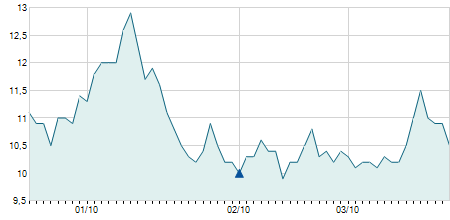 | 21/10/2009 | +0,60 / +0,71% | 88,00 | 89,00 | 85,00 | 85,20 | 85,20 | 10,48 | 30.600 |   |