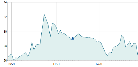 Giá đóng cửa ngày 27/12/2021