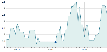 | 11/08/2021 | +1,30 / +7,26% | 18,10 | 19,50 | 18,10 | 19,20 | 18,90 | 14,40 | 83.800 |   |