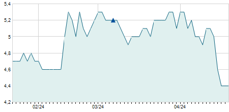 | 09/05/2025 | +1,30 / +14,29% | 10,40 | 10,40 | 10,40 | 10,40 | 10,40 | 10,40 | 2.500 |   |