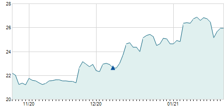 Giá đóng cửa ngày 26/01/2026