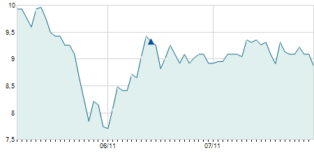 | 23/08/2019 | +0,11 / +3,45% | 3,19 | 3,30 | 3,00 | 3,30 | 3,13 | 3,30 | 224.590 |   |
