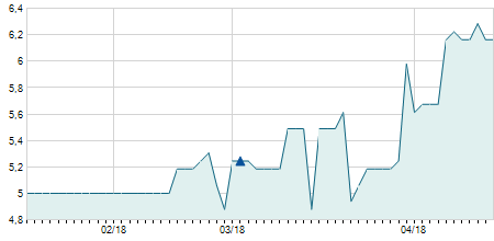 | 19/06/2015 | -0,50 / -3,60% | 14,50 | 14,50 | 13,40 | 13,40 | 14,08 | 3,15 | 1.900 |   |