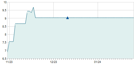 | 10/09/2015 | +0,90 / +8,33% | 11,70 | 11,70 | 11,70 | 11,70 | 11,70 | 2,75 | 100 |   |